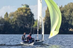 Gerade für die Kinder, die noch nicht so lange dabei sind, brachte das Wochenende einen enormen Lernzuwachs: Gennakar- und Trapezsegeln, dem Umgang mit stärkerem Wind und auch Regattastarts konnten ausführlich beübt werden, dafür sorgten die Trainer Arne, Chris, David, Katharina, Marlene und Moritz.